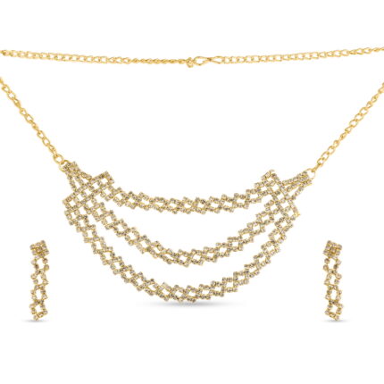 Gold Plated 3 Raw Chain Necklace Set with Earrings for Women | Partywear Jewelry – Lecner