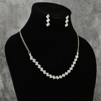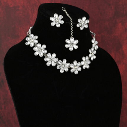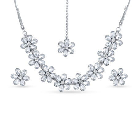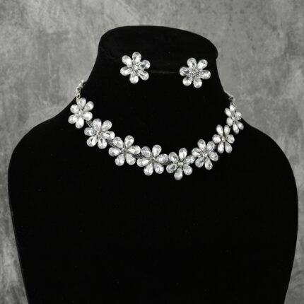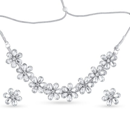 Silver Tone Floral Crystal Necklace Set with Earrings for Women | Partywear Jewelry – Lecner