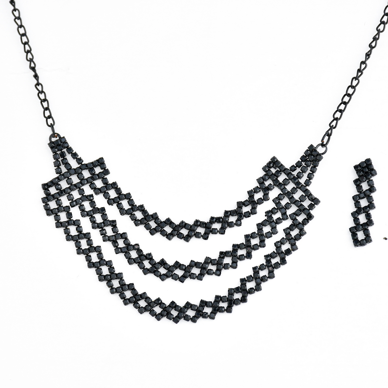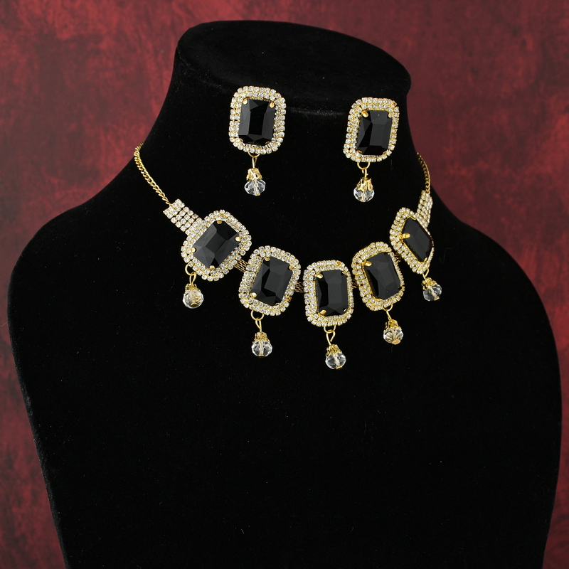 Black Crystal Necklace Set for Women | Partywear Jewelry – Lecner