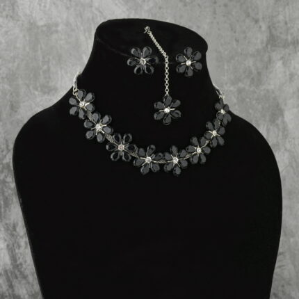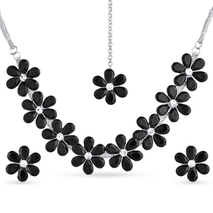 Black Floral Crystal Necklace Set with Earrings for Women | Partywear Jewelry – Lecner