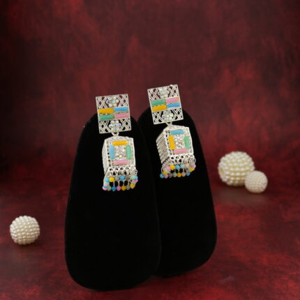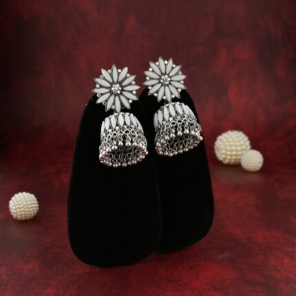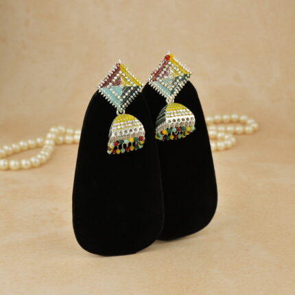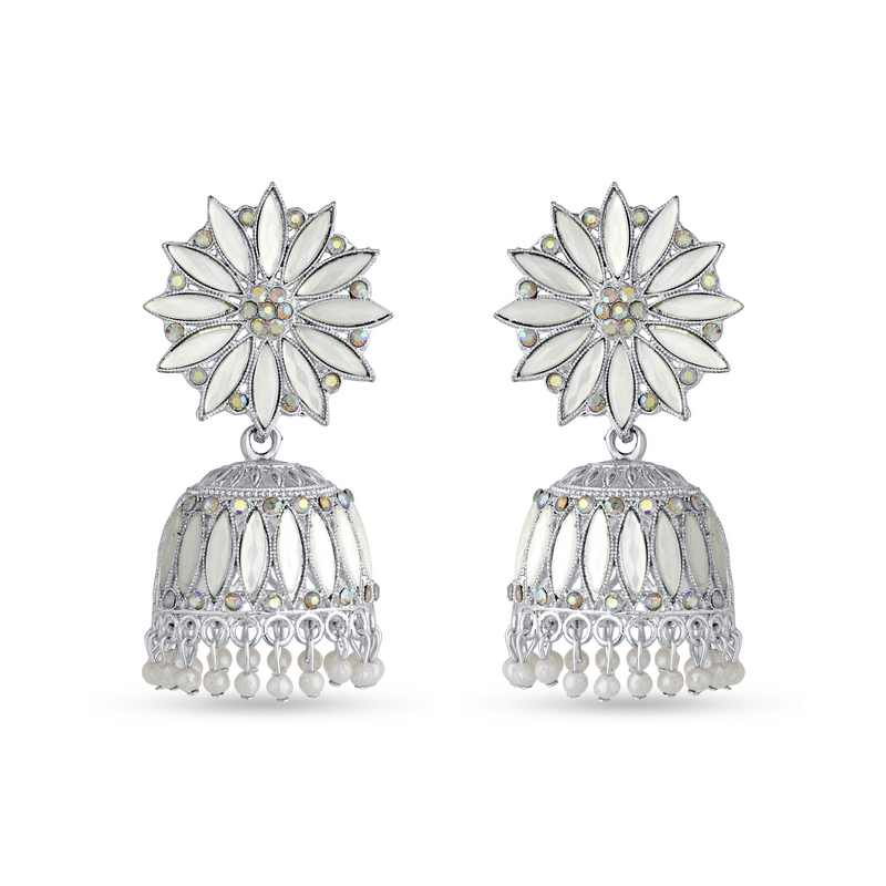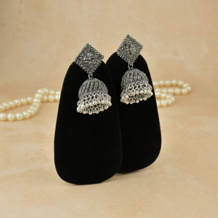 Traditional Stylish Jhumka Earrings in Silver Finish | Ethnic Jewellery