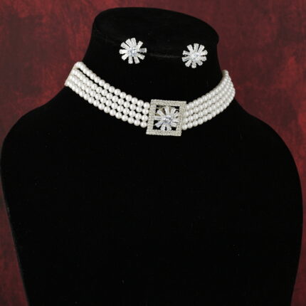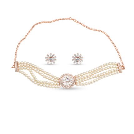 Rose Gold Pearl Choker Necklace Set with Earrings for Women | Partywear Jewelry – Lecner