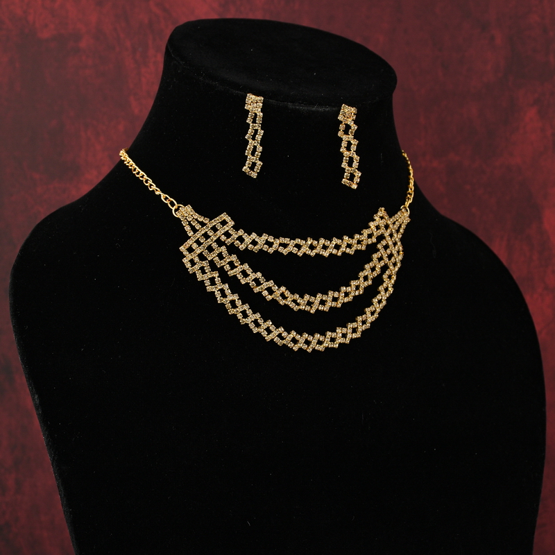 Gold Plated Crystal Choker Necklace Set with Earrings for Women | Partywear Jewelry – Lecner