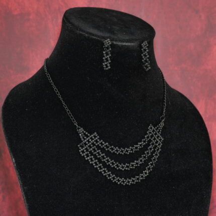 Black Plated Artificial Necklace Set with Earrings for Women | Partywear Jewelry – Lecner