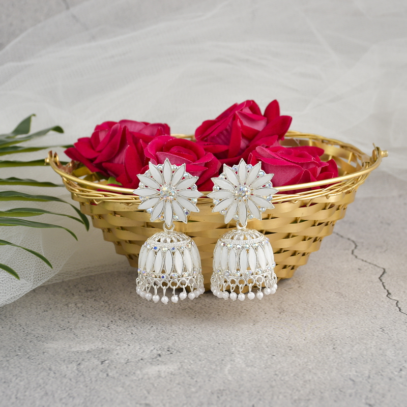 Home Jewelry Traditional Stylish Jhumka Earrings in Silver Finish | Ethnic Jewellery