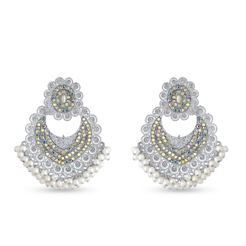 Traditional Stylish Jhumka Earrings in Silver Finish | Ethnic Jewellery