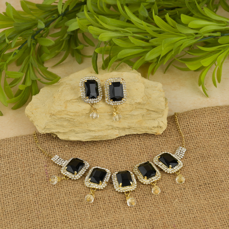 Black Crystal Necklace Set for Women | Partywear Jewelry – Lecner