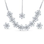 designed to add a touch of graceful charm to any outfit. Crafted with premium-quality clear crystals arranged in delicate flower patterns, this necklace offers a refined diamond-look shine that enhances your appearance effortlessly.