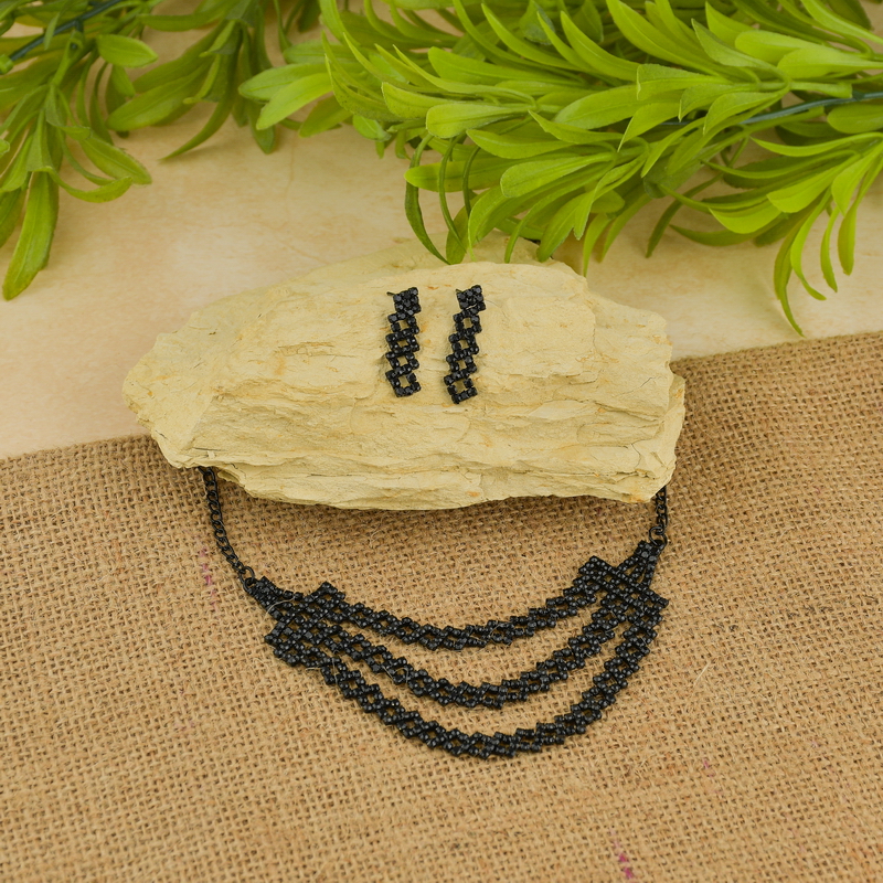Black Plated Artificial Necklace Set with Earrings for Women | Partywear Jewelry – Lecner